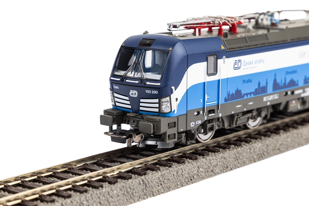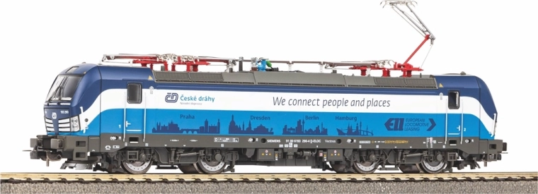 Dit Piko-model stelt de moderne elektrische locomotief Vectron voor in een aantrekkelijke ČD-bedrijfslivery met de slogan “We connect people and places”. Het blinkt uit door fijne bedrukking, gedetailleerde dakuitrusting inclusief pantografen en isolatoren, en een hoogwaardige loop voor soepel rijden. Witte/rode verlichting schakelt automatisch afhankelijk van de rijrichting.