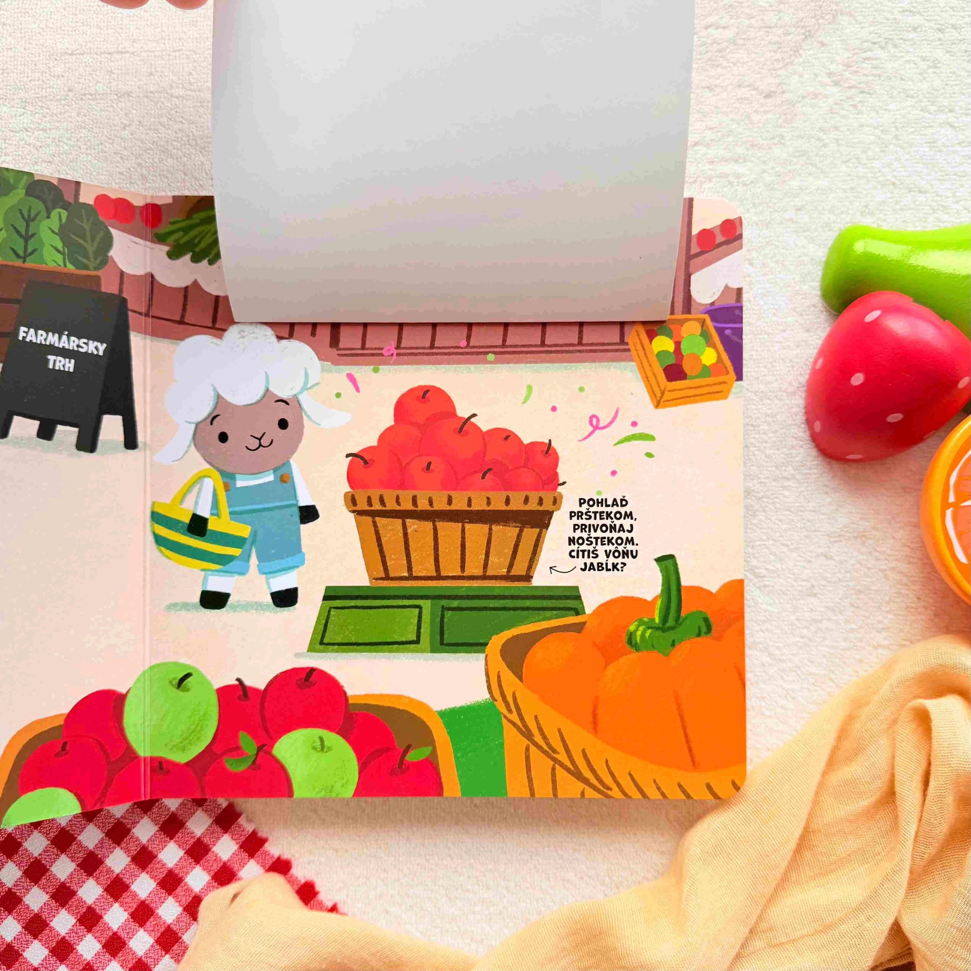 Ontdek een betoverend geurig boekje waarin het schaapje Belka boodschappen gaat doen op de boerenmarkt. Op elke spread schuilt een realistische fruit- of groentegeur – raak de pagina zachtjes aan en ruik. Lezen verandert in interactief plezier dat nieuwsgierigheid stimuleert, de verbeelding ontwikkelt en een positieve band met boeken opbouwt.