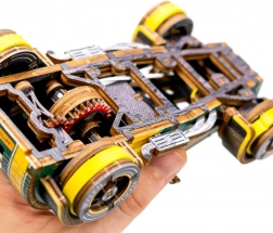 Wind het mechanisme op en kijk hoe de roadster soepel vooruit rijdt. De ideale combinatie van plezier en mechanische educatie.