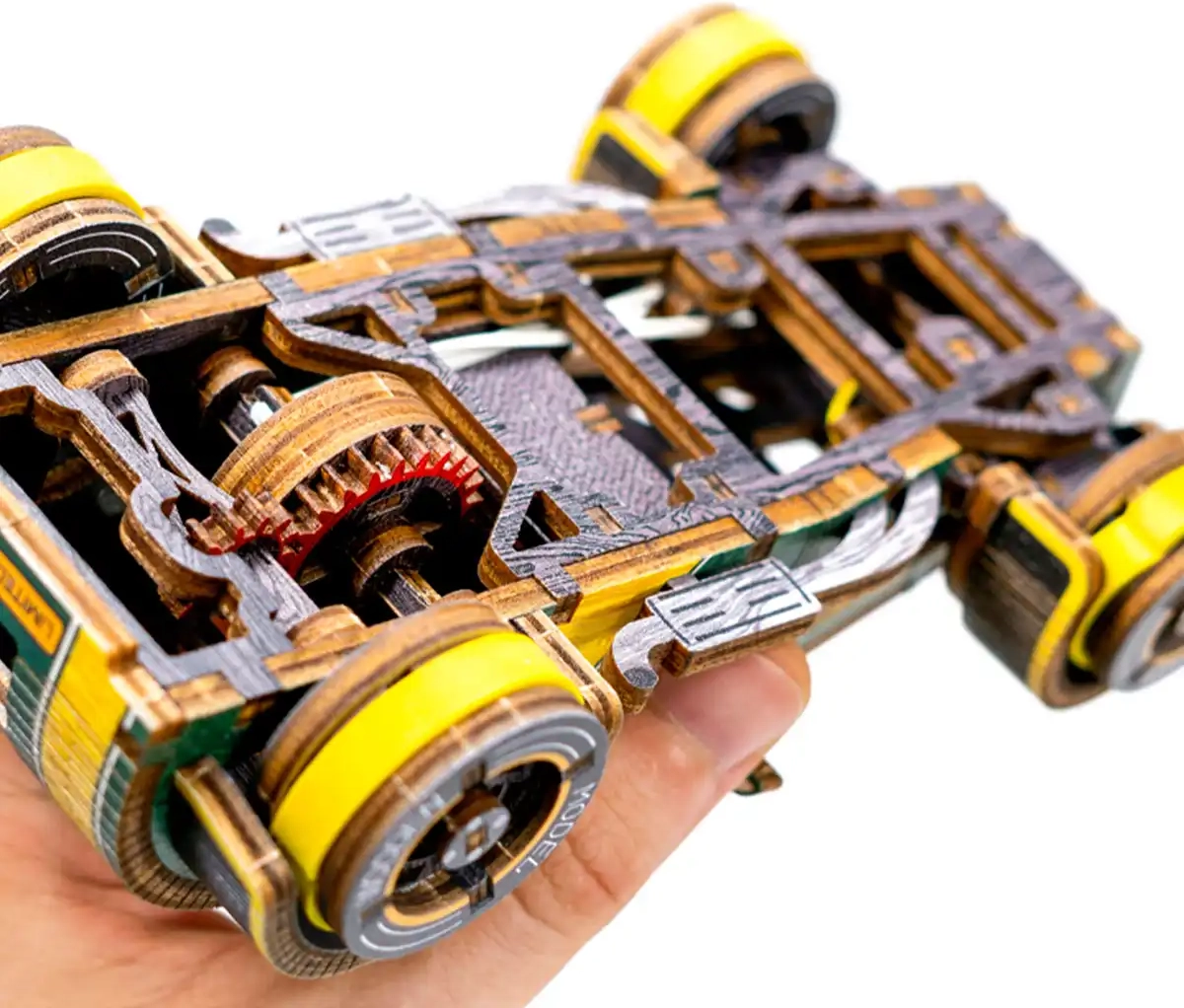 • Hoogwaardig materiaal – berkenmultiplex, gedetailleerd lasersnijwerk.
