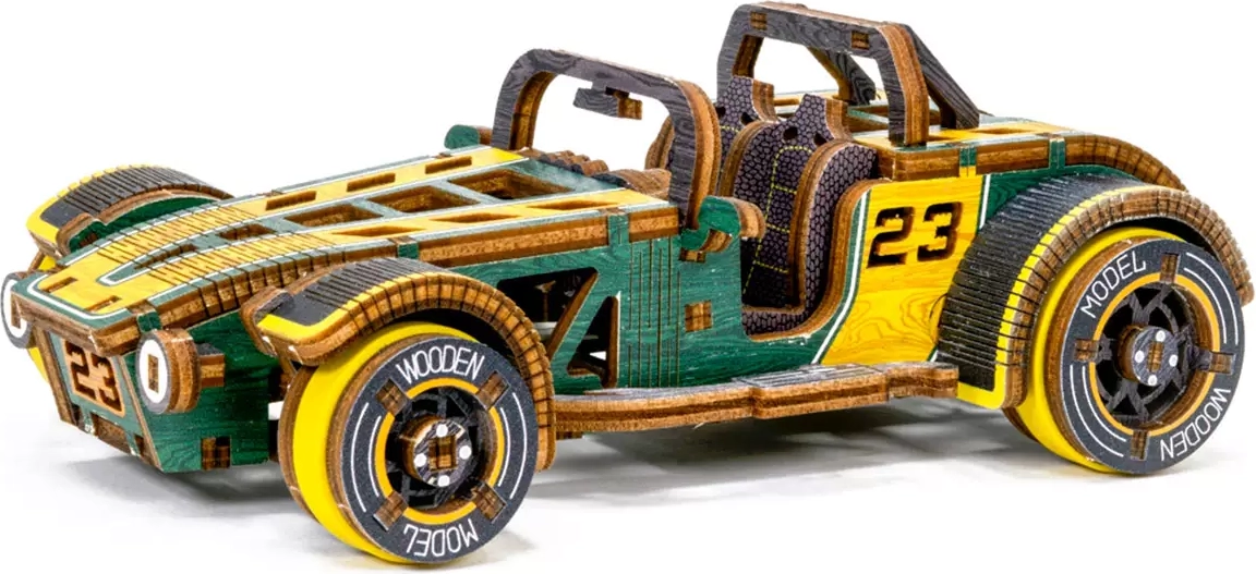 Ontdek het elegante houten model van een roadster als een origineel cadeau voor liefhebbers van techniek en design. Dit functionele 3D-model rijdt dankzij een rubber­aandrijving, heeft stuurbare voorwielen en legt na volledig opwinden tot 1 meter af. Het wordt zonder lijm en gereedschap in elkaar gezet van hoogwaardige berkenmultiplex en is verpakt in een houten doos met magneten, die ook als standaard dient.