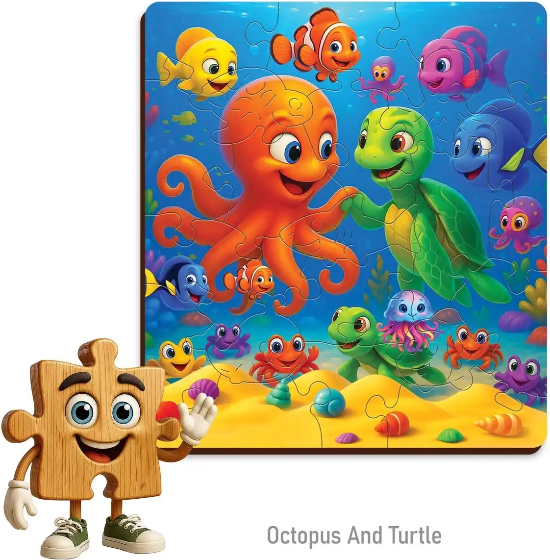 Ontdek de magie van de onderwaterwereld met de houten puzzels van WOODEN CITY. Een set van 20 stukjes met een octopus en een schildpad biedt leuk puzzelplezier, 5 uniek gevormde stukjes en precieze laserbewerking met gladde randen zonder splinters. Geweldig voor het ontwikkelen van concentratie, geduld en creativiteit bij kinderen, inclusief een losse voorbeeldplaat voor makkelijker puzzelen.