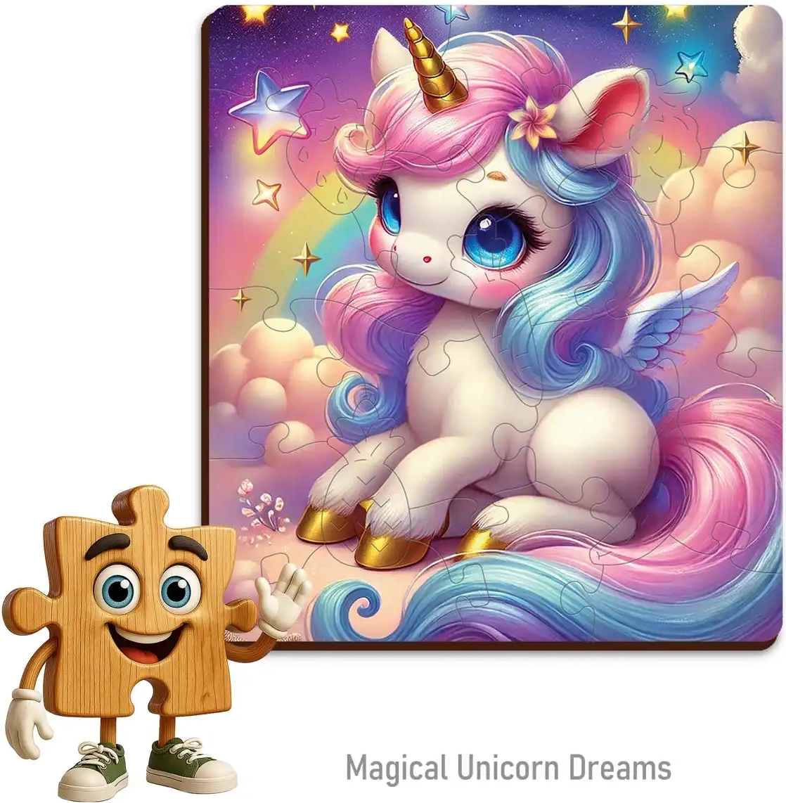Deze set is een geweldig cadeau voor kinderen die van eenhoorns houden en willen oefenen met een kwalitatieve houten puzzel van WOODEN CITY.