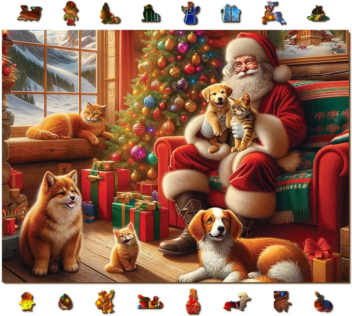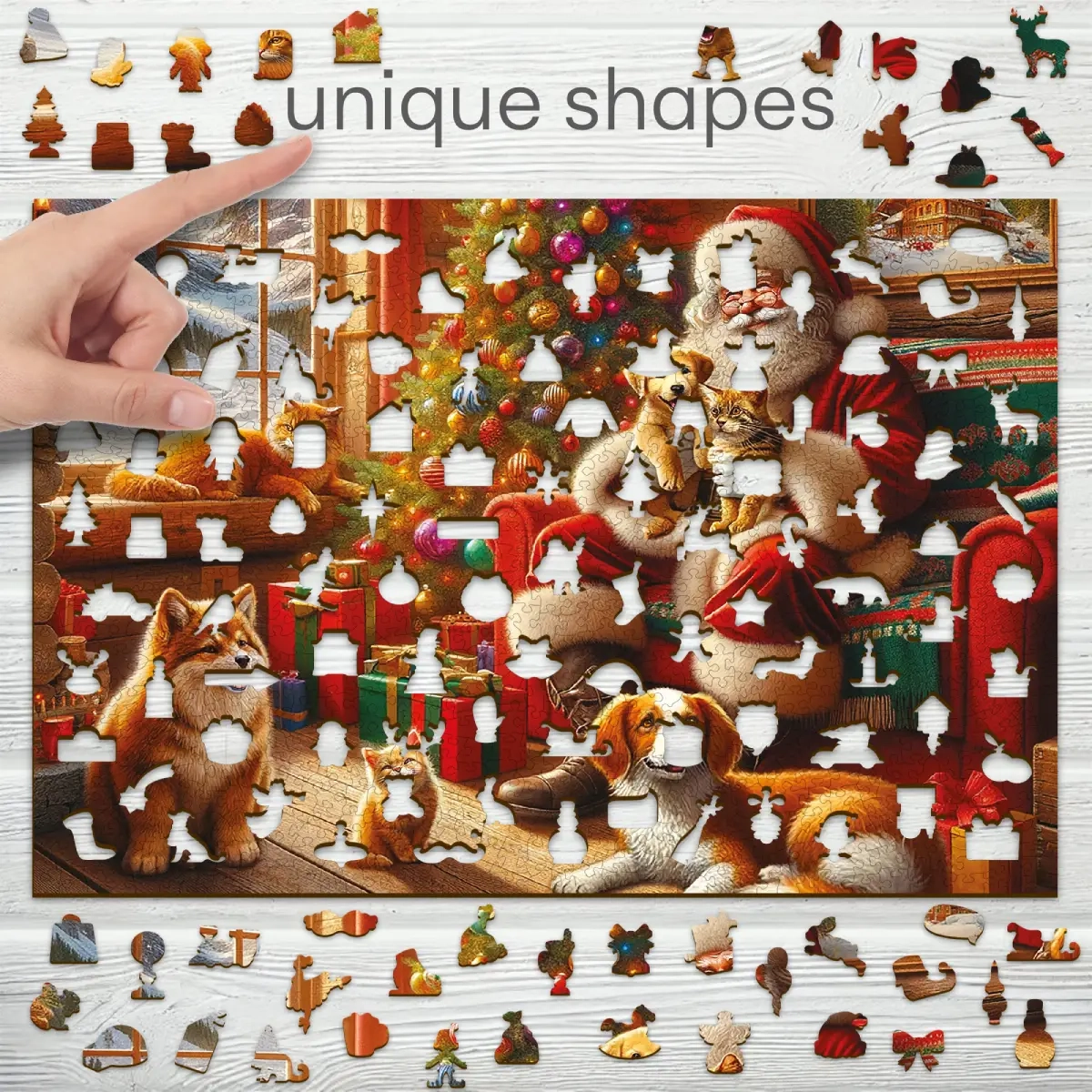 De houten puzzel Wooden City Kerstman en vrienden brengt de feestelijke sfeer rechtstreeks bij je thuis. De precieze laserbewerking zorgt voor soepel en nauwkeurig passen, terwijl speciale stukjes in de vorm van thematische motieven elke puzzelliefhebber zullen verblijden. In de verpakking vind je ook een losse voorbeeldposter voor comfortabeler puzzelen.