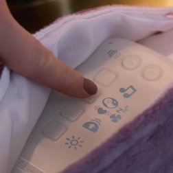 Het zacht gloeiende buikje en de keuze uit melodieën, natuurgeluiden en witte ruis helpen je kindje te ontspannen en beter in slaap te vallen.