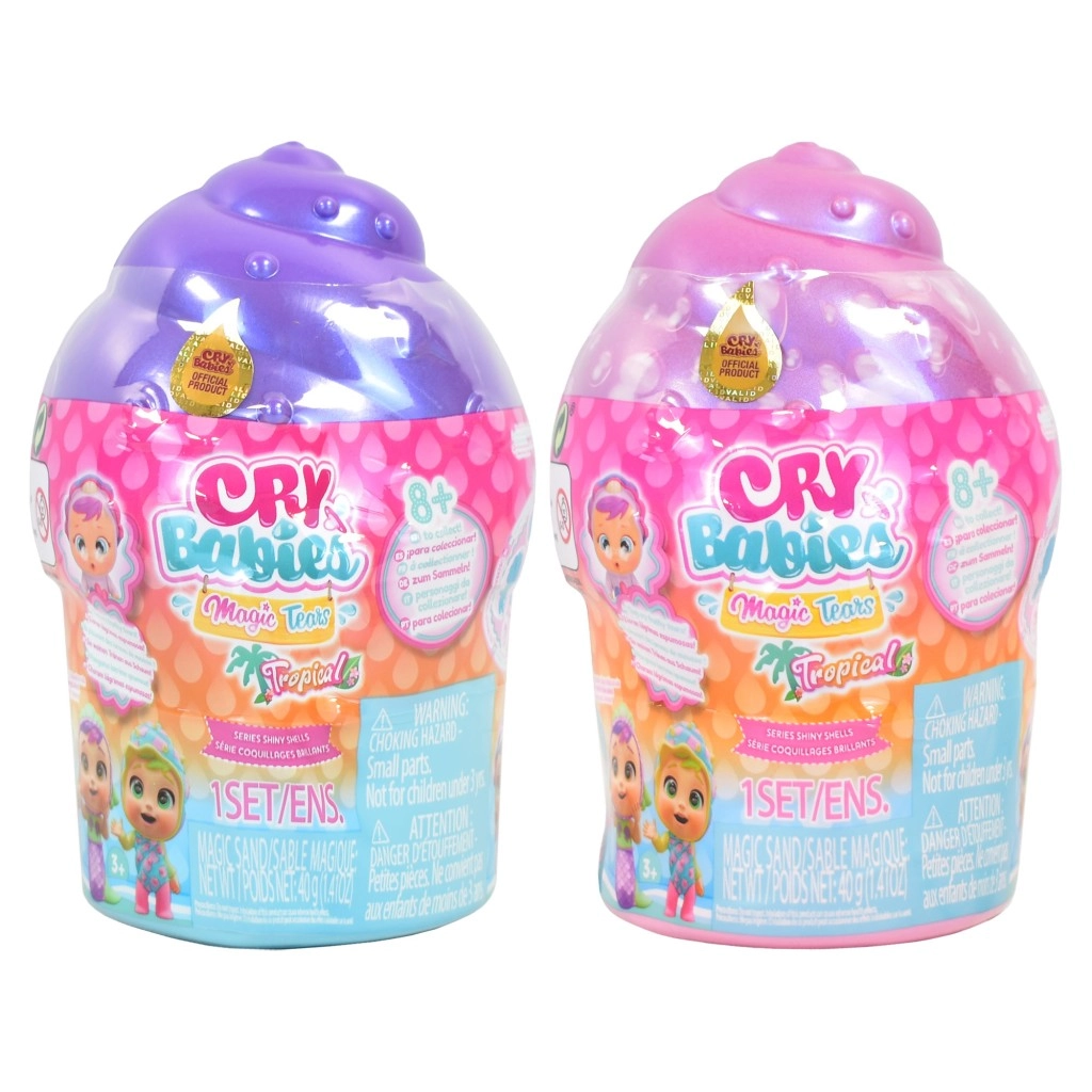 De Cry Babies Magic Tears Shiny Shell-pop brengt kinderen het plezier van uitpakken en een fantasiewereld vol accessoires. Elke pop is verstopt in een parelmoeren schelp-capsule die bij het openen meer dan 9 verrassingen onthult, verborgen in het zand. Vul het flesje met water en druk zachtjes op het buikje: de pop huilt schuimende tranen – een spectaculair detail dat emotioneel spel en zorg stimuleert.