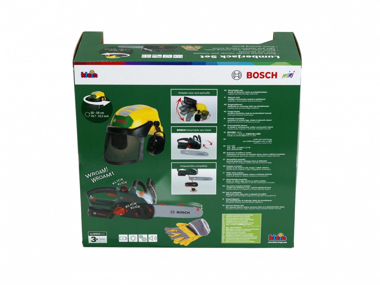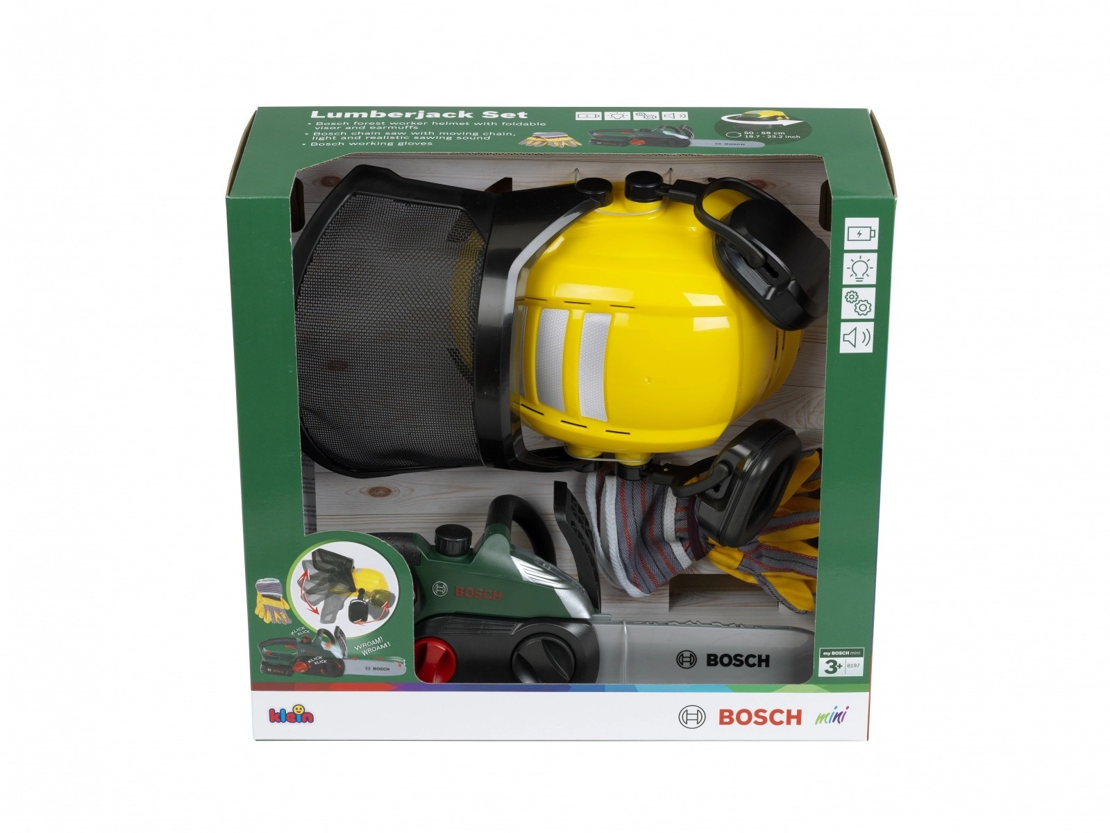 De BOSCH kinderhoutkapset is ontworpen voor veilig en stimulerend spel. De elektronische kettingzaag geeft na het plaatsen van het zwaard authentiek zaaggeluid en begeleidende knipperende verlichting, wat het gebruik van een echt gereedschap nabootst. De verstelbare helm met vizier en geïntegreerde “gehoorbeschermers” verhoogt de realiteit en leert kinderen de basisprincipes van veiligheid.