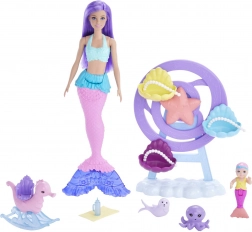 Neem kinderen mee naar een sprookjesachtige oceaan waar Barbie als zorgzame zeemeermin de baby en zeewezens begeleidt tijdens speelse avonturen. De set in pasteltinten nodigt uit tot creatief vertellen en ontwikkelt zowel de fijne motoriek als de verbeelding.