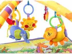 De speeltjes rammelen en piepen, wat de ontwikkeling van gehoor, tast en fijne én grove motoriek bevordert. Dankzij de te openen ringen maak je ze eenvoudig los en kan je kind zijn favoriete vriendjes meenemen. Het kleed is compact opvouwbaar, snel op te zetten en weer in te klappen en je neemt het dankzij de draagbare plastic tas overal mee naartoe.