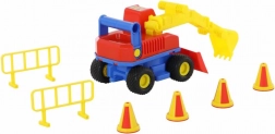 De Mega graafmachine ConsTruck biedt kinderen urenlang fantasierijk speelplezier. Dankzij de duurzame constructie, de zachte rubberen banden en de eenvoudig te bedienen arm met laadbak kunnen kinderen moeiteloos kleine voorwerpen scheppen en verplaatsen. Inclusief pionnen en barrières voor realistische bouwscenario’s.