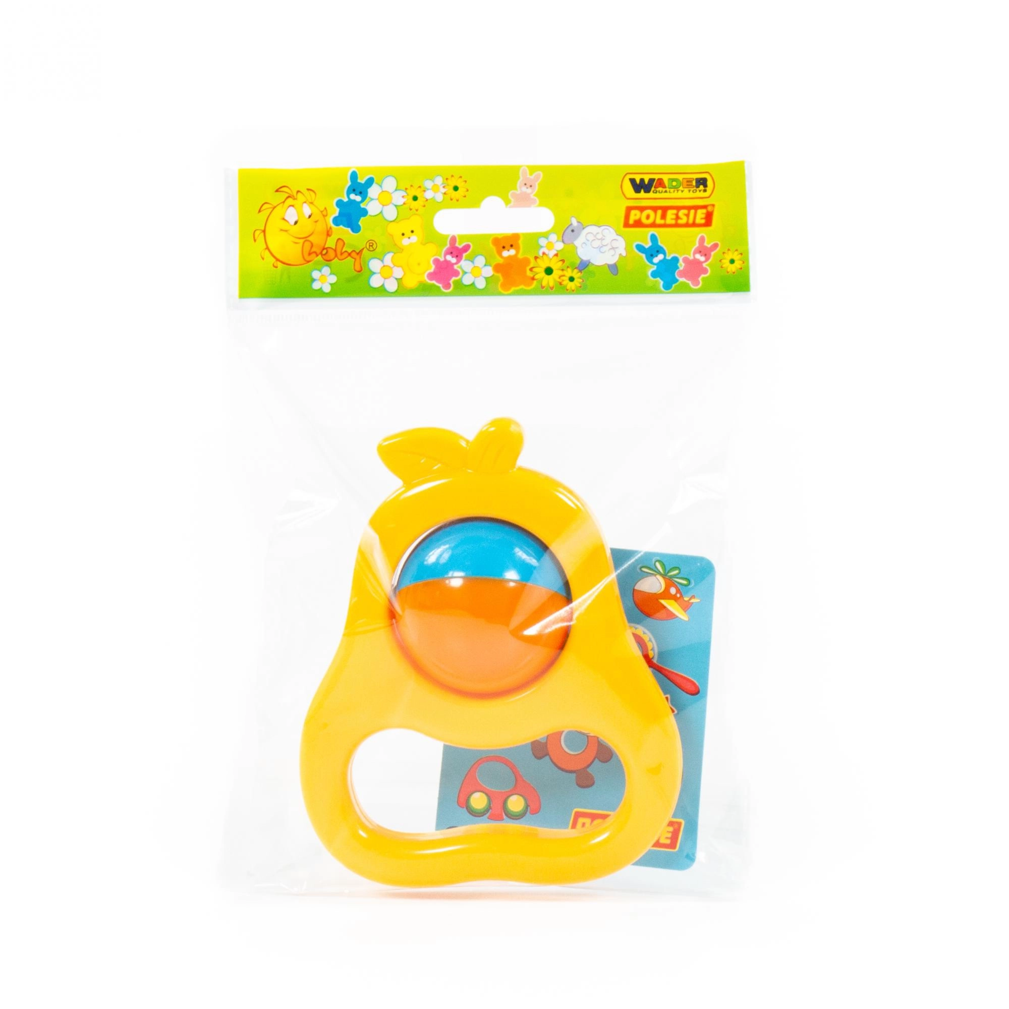 Binnenin bevindt zich een kleurrijk draaielement dat bij beweging zacht rammelt en het kind motiveert om te grijpen en te schudden. Heldere kleuren stimuleren het zicht en ondersteunen concentratie. De kleur wordt geleverd volgens de actuele voorraadbeschikbaarheid.