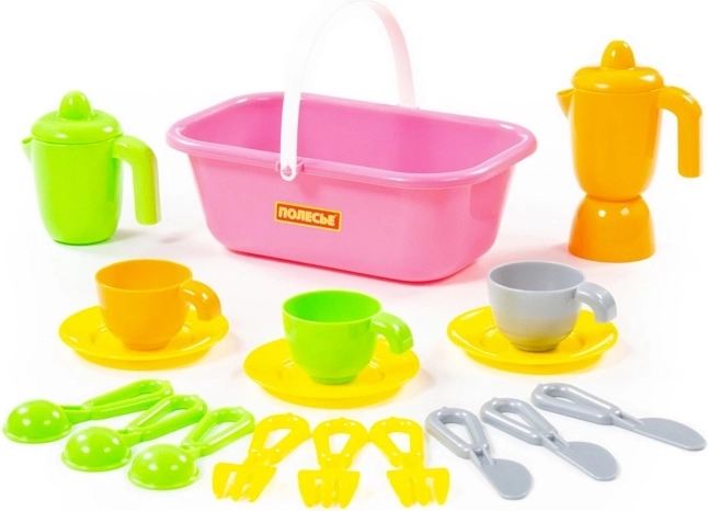 De set is ontworpen voor drie eters en biedt diverse accessoires waarmee kinderen kunnen genieten van realistisch koksspel. Geweldig als cadeau, voor in de speelkeuken en voor onderweg.