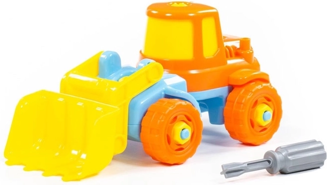 Inclusief eenvoudige kinderschoevendraaier – kinderen kunnen de graafmachine uit elkaar halen en opnieuw monteren, waarmee ze hun fijne motoriek en geduld trainen.