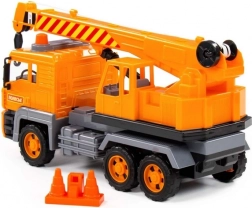 Ontdek een geweldige bouwspeelgoedset voor kleine techniekliefhebbers. Deze kraan biedt realistische functies – een draaiplateau voor richtingsverandering, een uitschuifbare giek voor groter bereik en een haak die met een handlier omhoog en omlaag kan worden bewogen. Dankzij het inertiesysteem rijdt het voertuig gemakkelijk aan en blijft het soepel rijden.