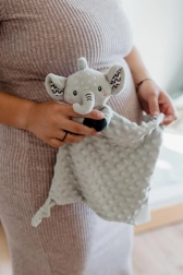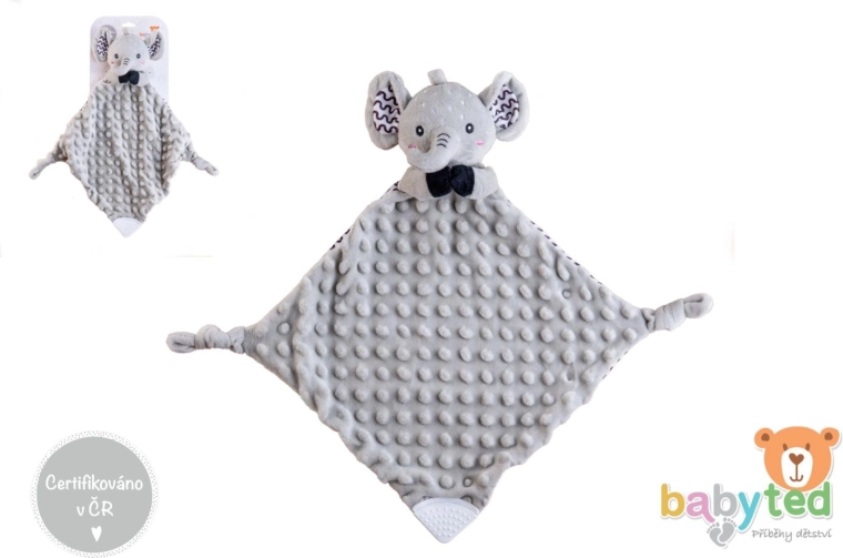 Een superzacht knuffeldoekje in de vorm van een olifant van BABYTED geeft je baby een gevoel van veiligheid en helpt bij een rustige slaap. De zachte minky-stof met 3D stipjes nodigt uit om te knuffelen, de verborgen zachte rammelaar stimuleert het gehoor en de zachte siliconen bijtring verlicht bij doorkomende tandjes. Geschikt vanaf de geboorte, gecertificeerd in Tsjechië.