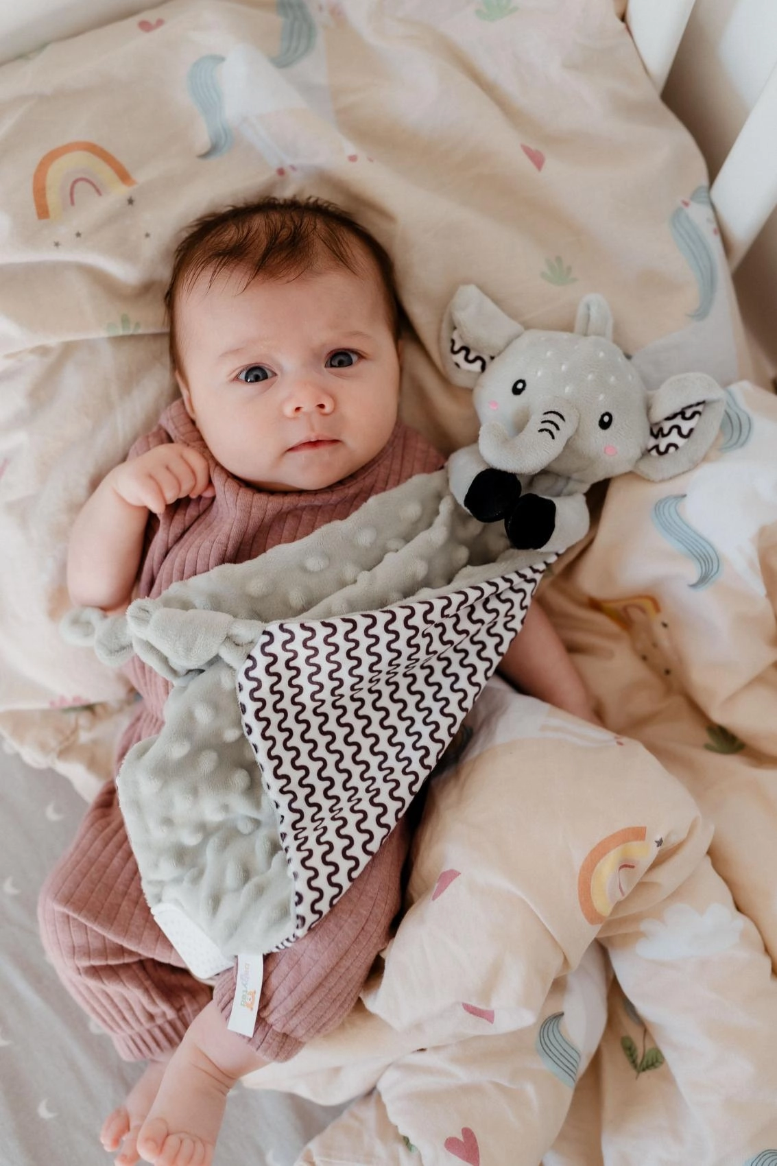 Geef je baby een rustgevende knuffelvriend voor elke dag. Het olifant knuffeldoekje van BABYTED is gemaakt van uitzonderlijk aangename minky met een uitgesproken 3D-structuur die de tast stimuleert en uitnodigt tot knuffelen. Dankzij het lichte ontwerp en de knoopjes op de hoeken kunnen zelfs de kleinste handjes het gemakkelijk vasthouden.