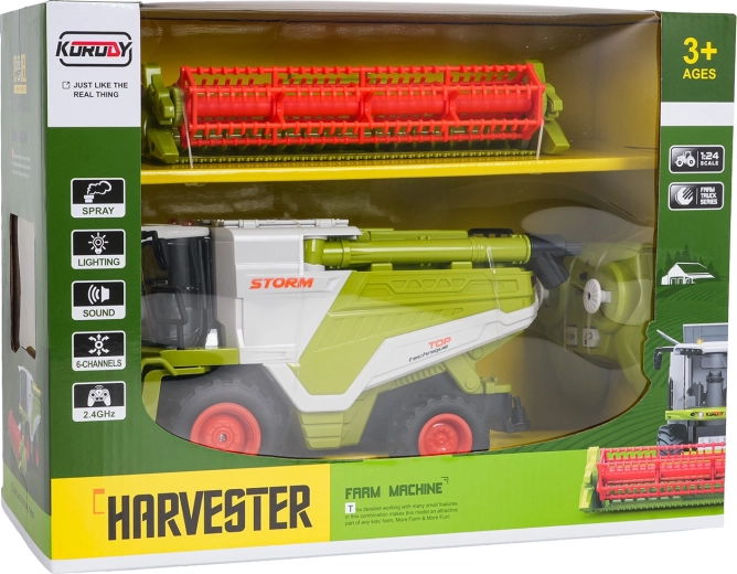Kinder RC maaidorser 1:24 groen met rookeffect