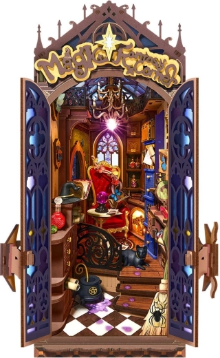 De set is gemaakt van hoogwaardige, veilige en niet-giftige materialen. Dankzij het doordachte ontwerp werkt het model zowel als boekensteun als zelfstandige kastdecoratie. De LED-verlichting zorgt ’s avonds voor een knusse, mysterieuze sfeer en accentueert elk miniatuurdetaill.