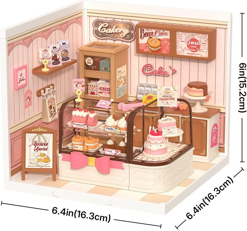 Pastelroze en bruine wanden zijn versierd met posters van Sweet Bear, de mascotte van de winkel, die ook op het menu en de meeneemtasjes terugkomt. Dankzij de lage moeilijkheidsgraad (1/5) en de korte bouwtijd (ca. 1 uur) is deze set perfect voor ontspanning na het werk, als eerste stap in de wereld van miniatuurbouw en als stijlvolle decoratie.