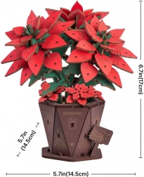 Deze elegante 3D houten kerstster in een pot bestaat uit laser-gesneden onderdelen die genummerd zijn voor snelle en intuïtieve montage. Dankzij de stevige constructie blijft de vorm behouden en ontstaat na het bouwen een indrukwekkende feestelijke decoratie met realistische bladeren en bloembladen.