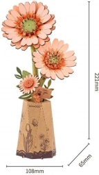 Het voltooide model komt prachtig tot zijn recht als blijvende decoratie op tafel of op een plank. De afzonderlijke bloemen kun je naar wens combineren tot een origineel houten boeket. Moeilijkheidsgraad is 2/5, dus ook geschikt voor beginners.