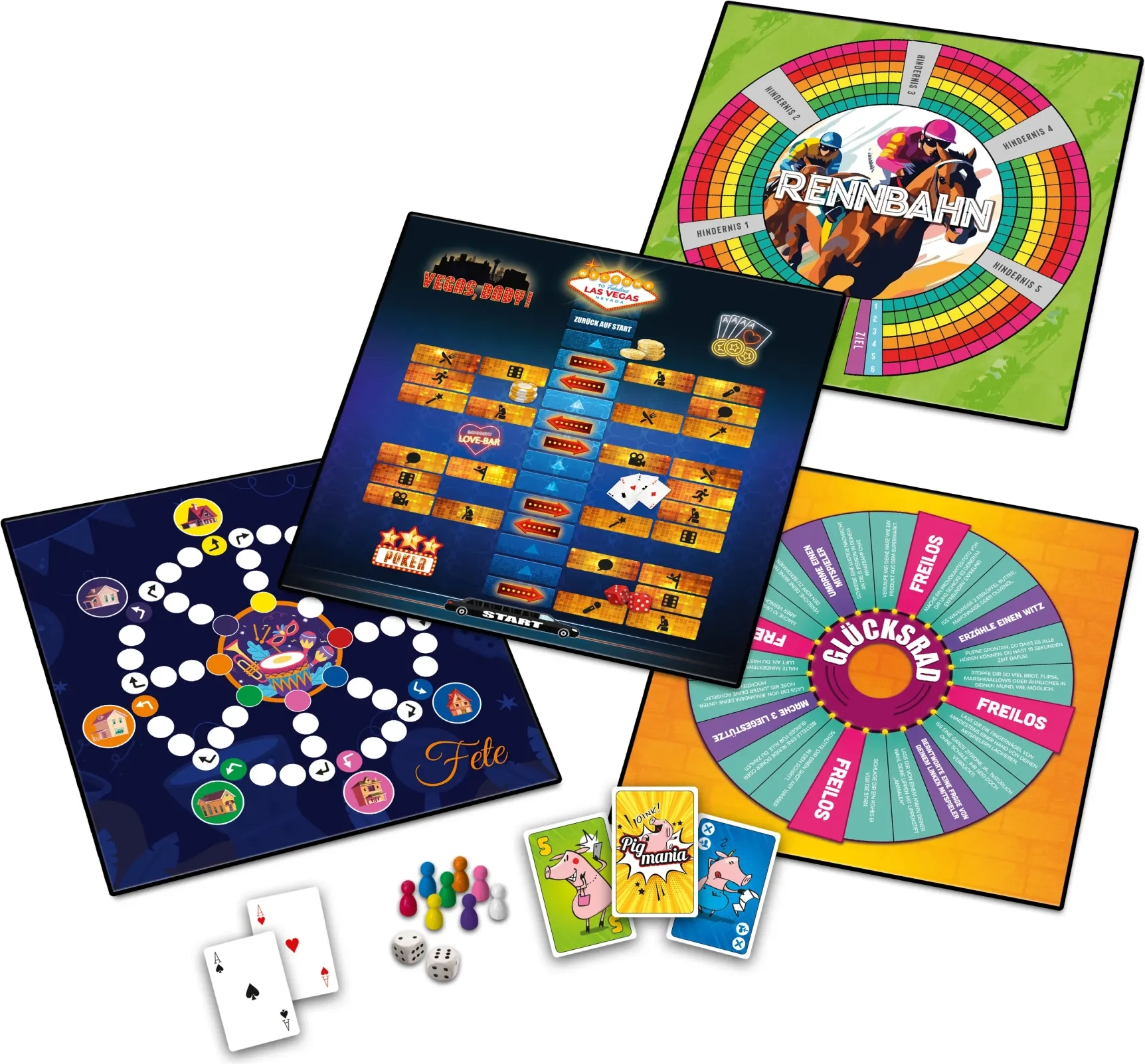 Partymania is een veelzijdige set die variatie, eenvoudige regels en snelle voorbereiding combineert. Dankzij twee dubbelzijdige spelborden, tientallen kaarten en houten componenten kies je een spel voor elke gelegenheid – van snelle woorduitdagingen tot teamactiviteiten.