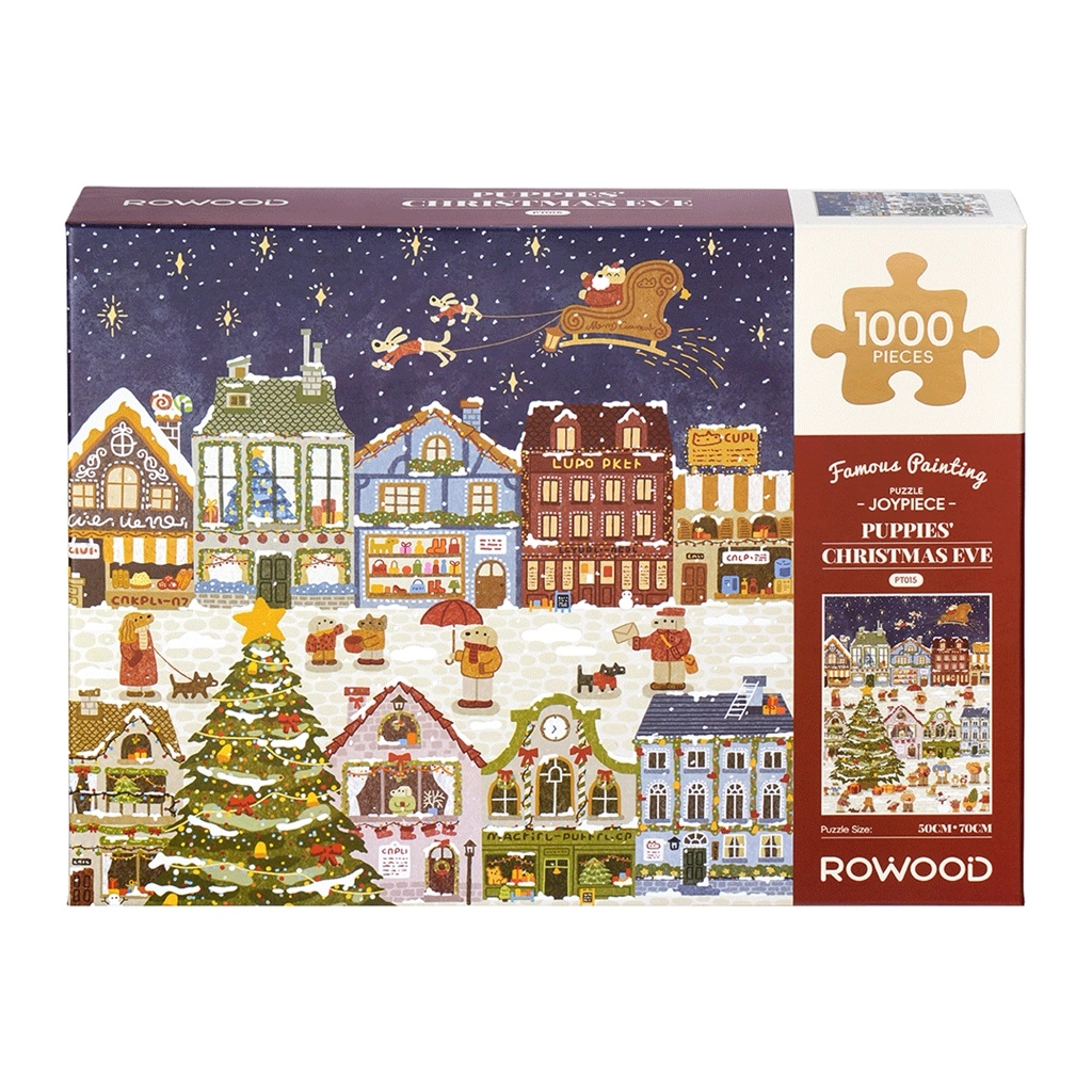 Ontdek de sfeer van een bruisende winterstad en schattige puppy’s in een unieke nachtscène. De RoboTime-puzzel blinkt uit door eersteklas print, aangename afwerking en hoge weerstand tegen slijtage, zodat je keer op keer kunt puzzelen. In de doos vind je ook een ansichtkaart met hetzelfde motief – perfect om jouw wensen te versturen.