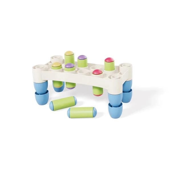Veilige, gladde vormen en heldere kleuren stimuleren de visuele waarneming en motiveren tot herhaald spelen. De set is zo ontworpen dat alle onderdelen perfect samenwerken en ook voor kleine handjes gemakkelijk vast te pakken zijn.