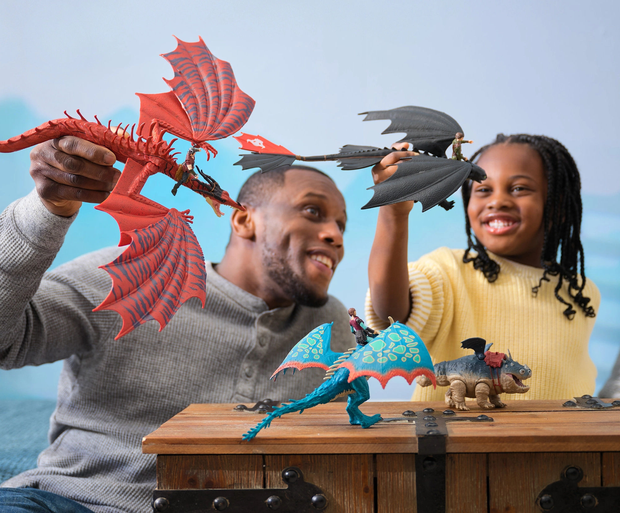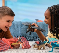 Inclusief drie ruiterfiguren – Hiccup, Astrid en Snotlout – ongeveer 7,5 cm hoog, die je dankzij speciale sluitingen eenvoudig in de zadels plaatst. De set prikkelt de fantasie, ondersteunt creatief vertellen en is ideaal voor filmliefhebbers en verzamelaars.