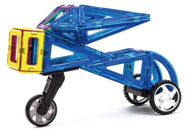 Het aanvullende motorwiel voor de MAGFORMERS bouwset breidt het aanbod wielen uit voor het maken van originele modellen. Het onderdeel is ontworpen voor snel en eenvoudig vastklikken in een MAGFORMERS-vierkant, zodat kinderen direct nieuwe varianten van eensporig voertuigen en driewielers kunnen bouwen.