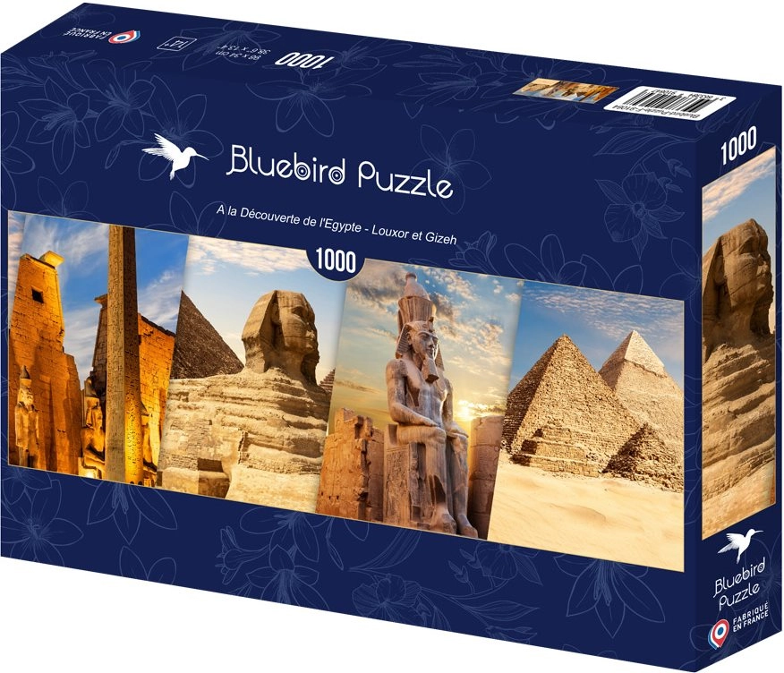 Ga op reis naar de geheimen van de oude beschaving met de panoramische puzzel van BLUEBIRD. De afbeelding toont de iconische scènes van Luxor en Gizeh en dankzij het panoramische formaat komt hij aan elke muur prachtig tot zijn recht. Het leggen van 1000 stukjes biedt ontspannen plezier, bevordert de concentratie en is ideaal voor zowel geschiedenisliefhebbers als puzzelaars.