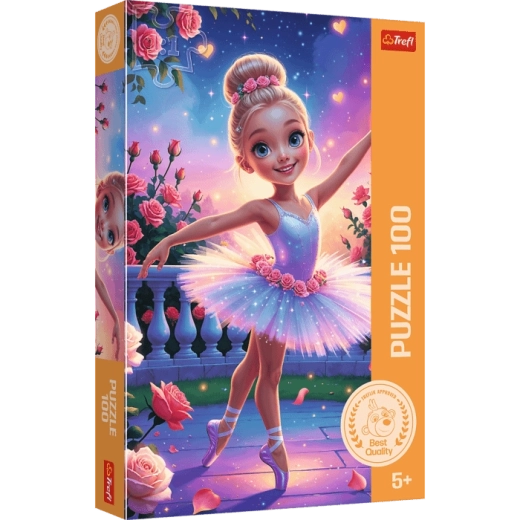 Ontdek de betoverende wereld van dans met de kinderpuzzel TREFL Ballerina. De set bevat 100 precies uitgesneden stukjes die na het leggen een fijn motief vormen van een dansende ballerina omringd door rozen. Dankzij de hoogwaardige print en het gekalanderd papier is het leggen comfortabel en glanst het beeld prachtig.
