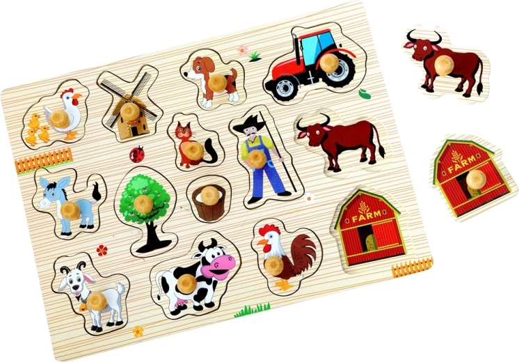 De houten boerderijpuzzel is een geweldige educatieve speelgoed voor kleine ontdekkers. Op de stevige ondergrond wachten 14 inlegstukjes met dieren en elementen van de boerderij, die kinderen dankzij de praktische knopjes gemakkelijk kunnen vastpakken. De hoogwaardige houten afwerking zorgt voor duurzaamheid, ook bij dagelijks spelen.