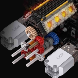 Het model uit de CADA Master-reeks ontwikkelt fijne motoriek en geduld, terwijl de gedetailleerde stap-voor-stap handleiding je door zelfs de complexere mechanismen leidt. De gele carrosserie met contrasterende elementen, de zichtbare V8, te openen deuren, motorkap en verstelbare achtervleugel maken van dit model een indrukwekkend showstuk én een leuke RC-auto.