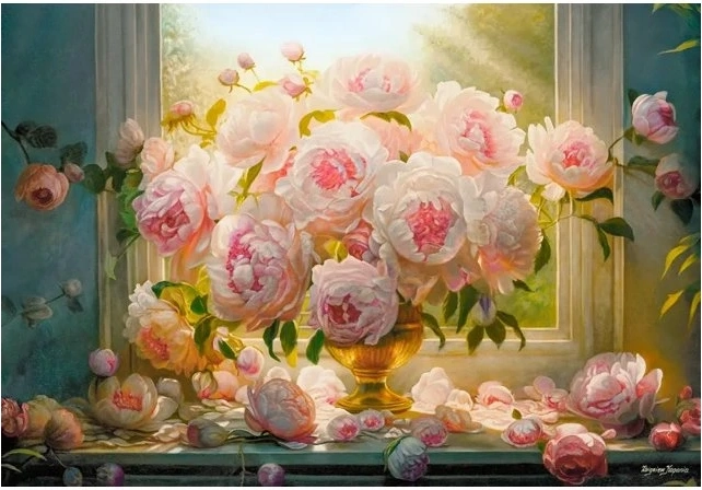 - Motief: romantische zomerse pioenen