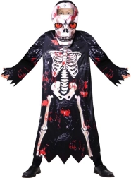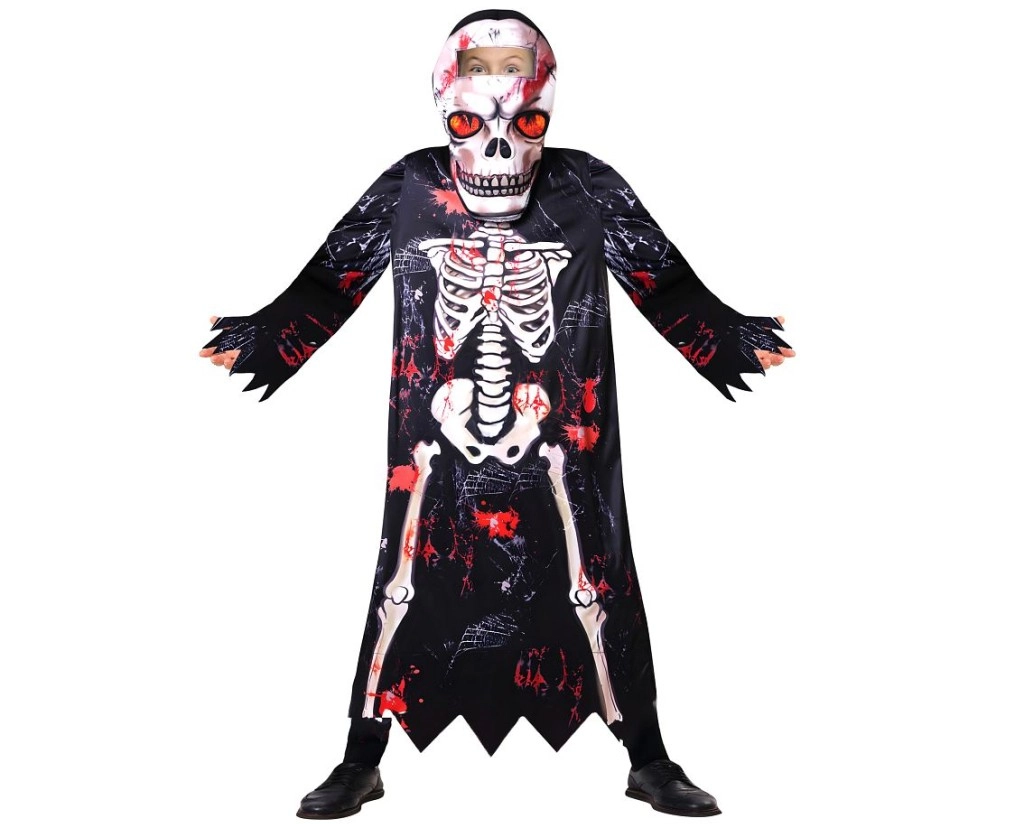 Geef Halloween en carnaval een flinke dosis griezelig plezier met dit kinderkostuum van een skelet in maat 110–120 cm. Inclusief lange mantel met capuchon en een gedetailleerd masker voor een perfecte griezelige look en comfortabele volledige bedekking bij elk spookavontuur.