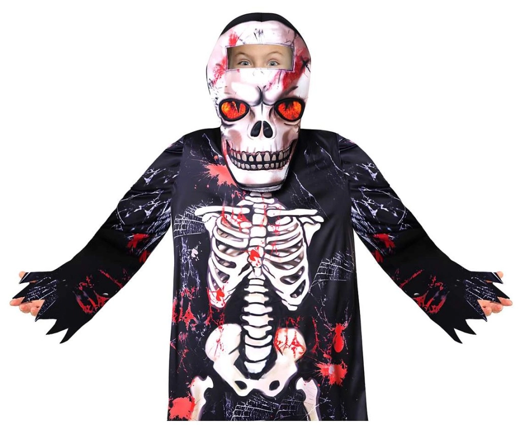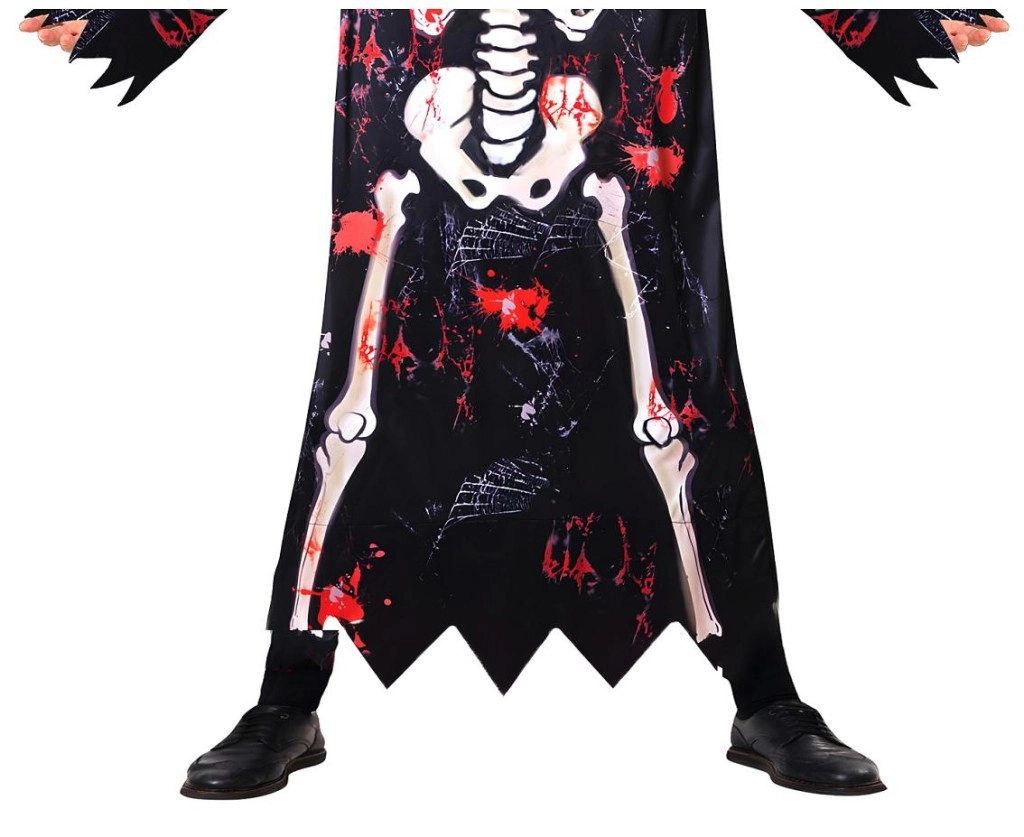 Het kinderkostuum skelet is ideaal voor Halloween, carnaval, schooloptredens en themafeestjes. De zwarte mantel met skeletprint en opvallende “rafelige” zomen zorgt voor een authentieke indruk, terwijl capuchon en masker gemakkelijk aan te trekken zijn en het gezicht betrouwbaar bedekken.