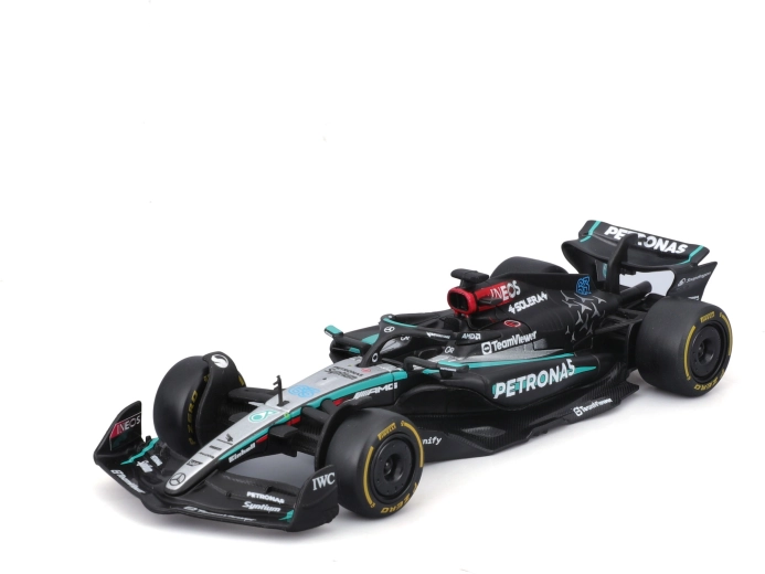 Dankzij realistische sponsorbedrukkingen, de zwarte “stealth”-livery met turquoise accenten en vrij draaiende wielen is het model een uitstekende aanvulling voor de vitrine én een cadeau voor fans van F1 en George Russell. De compacte schaal 1:43 maakt het eenvoudig om tentoon te stellen en om de hele teamreeks te verzamelen.