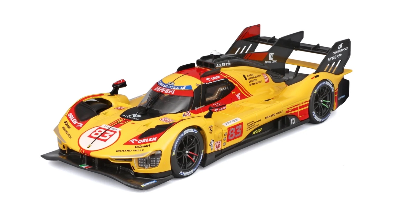 Het model Ferrari 499P op schaal 1:43 van Bburago biedt authentieke proporties, racegraphics en zorgvuldige details geïnspireerd op de start van de auto met nummer 83 tijdens de 24u Le Mans 2024. Dankzij de transparante hardcase is het ideaal voor veilig tentoonstellen en bescherming tegen stof.