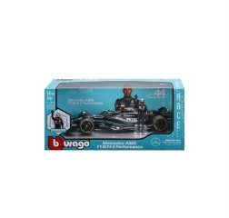 Het model op schaal 1:24 combineert hoogwaardige materialen met zorgvuldige details: van de voor- en achtervleugel, via de diffuser tot aan de halo en de cockpit. De wielen draaien vrij voor een overtuigende presentatie, terwijl de transparante vitrinedoos van Bburago het model beschermt en stijlvol laat opvallen.
