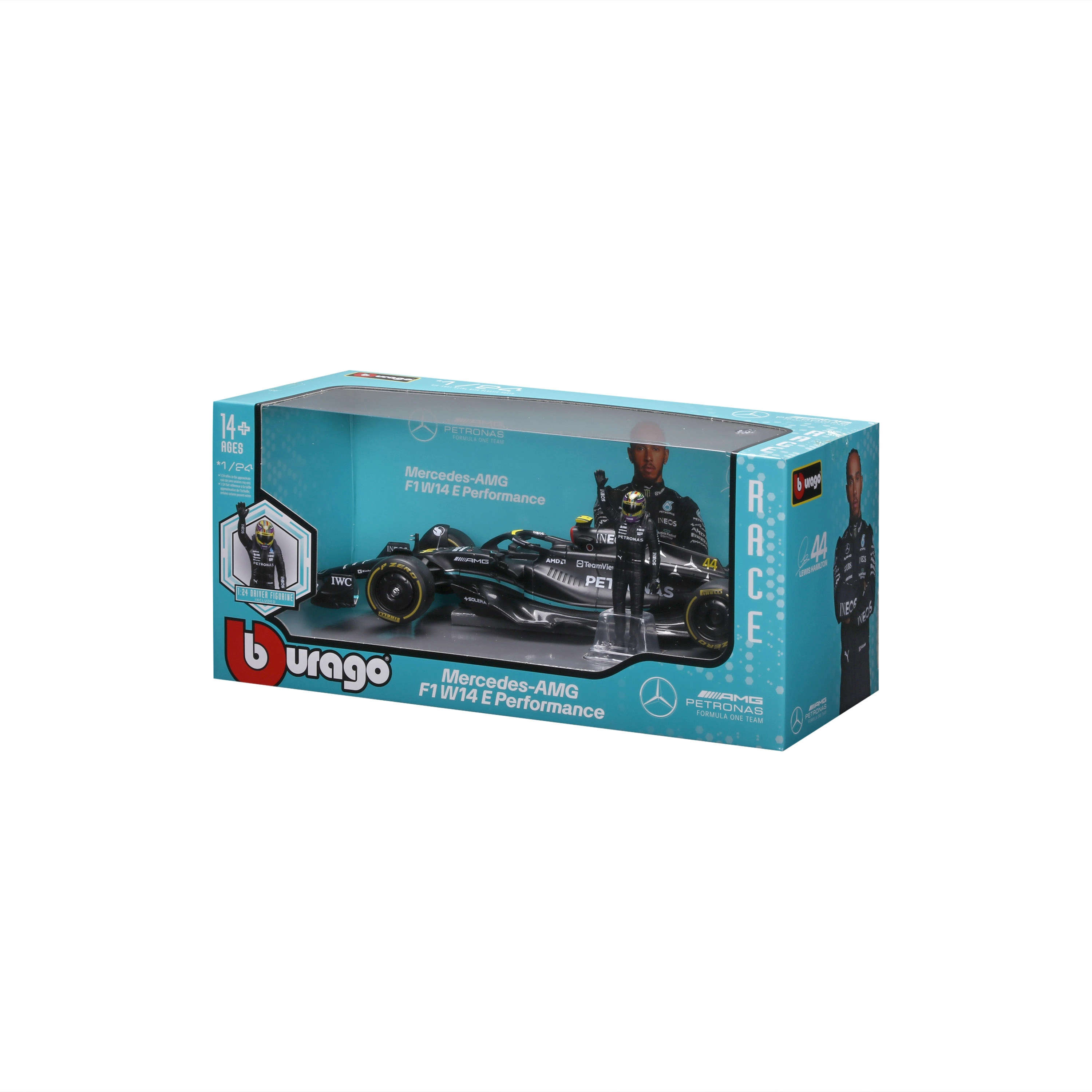 Beleef de sfeer van de Formule 1 met het nauwkeurig uitgewerkte model MERCEDES-AMG PETRONAS F1 W14 E in de kleuren van het seizoen 2023. De getrouwe carrosserie met nummer 44, complexe aero-elementen, realistische banden en authentieke belettering maken het tot een indrukwekkend stuk voor elke collectie. Inclusief coureursfiguur voor een effectvolle presentatie.