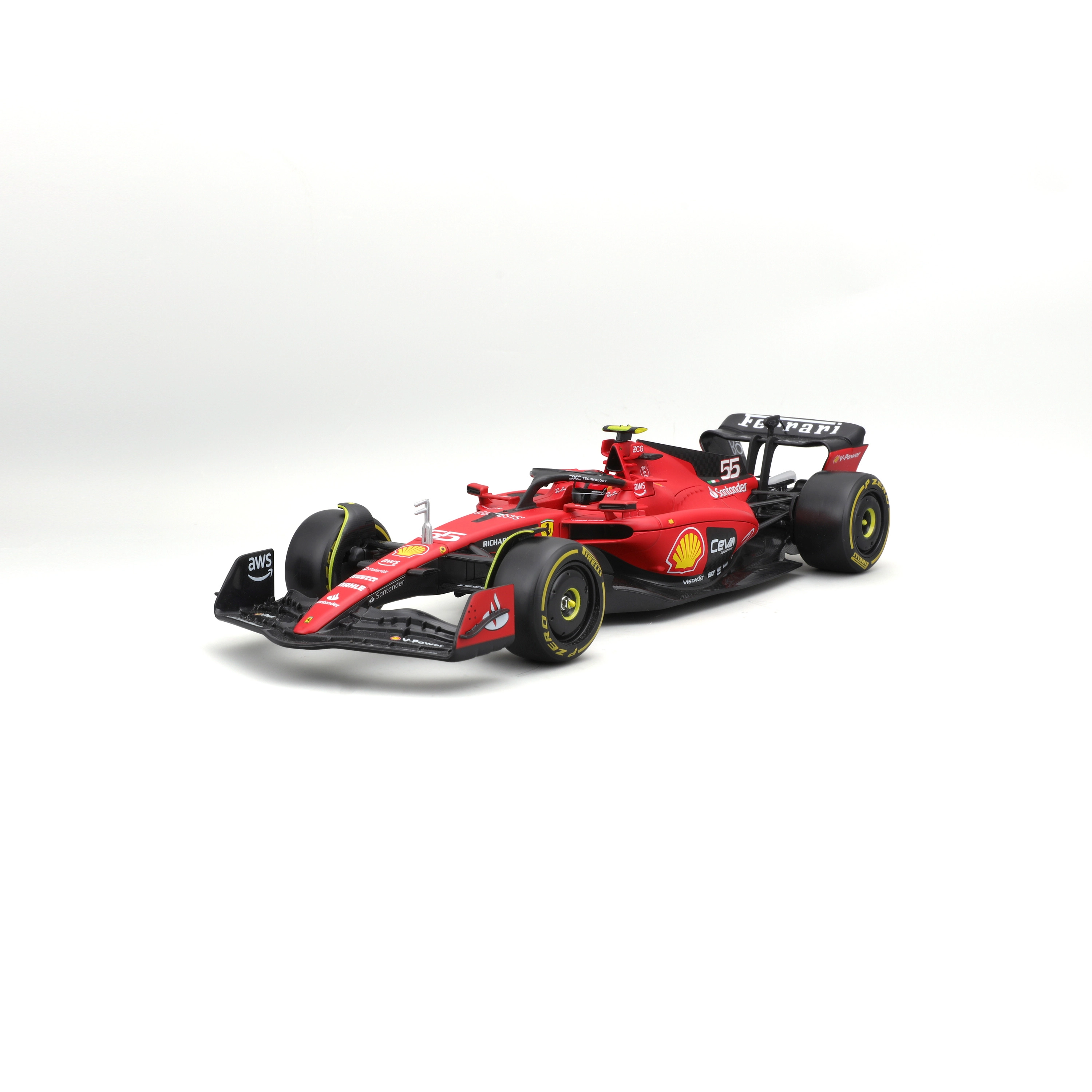 Precisie-aerodynamische elementen, halo, vleugels en realistische slickbanden met gedetailleerde bedrukking komen overeen met de echte FERRARI SF23.