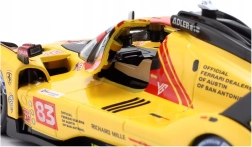 Dit verzamelmodel Bburago Ferrari 499P LMH op schaal 1:24 weerspiegelt getrouw de vormen en het racekarakter van de Hypercar-klasse. De gele kleurstelling en de 24h Le Mans 2024-stickers met startnummer 83 geven het model een authentieke look die zowel in de vitrinekast als op het bureau opvalt.