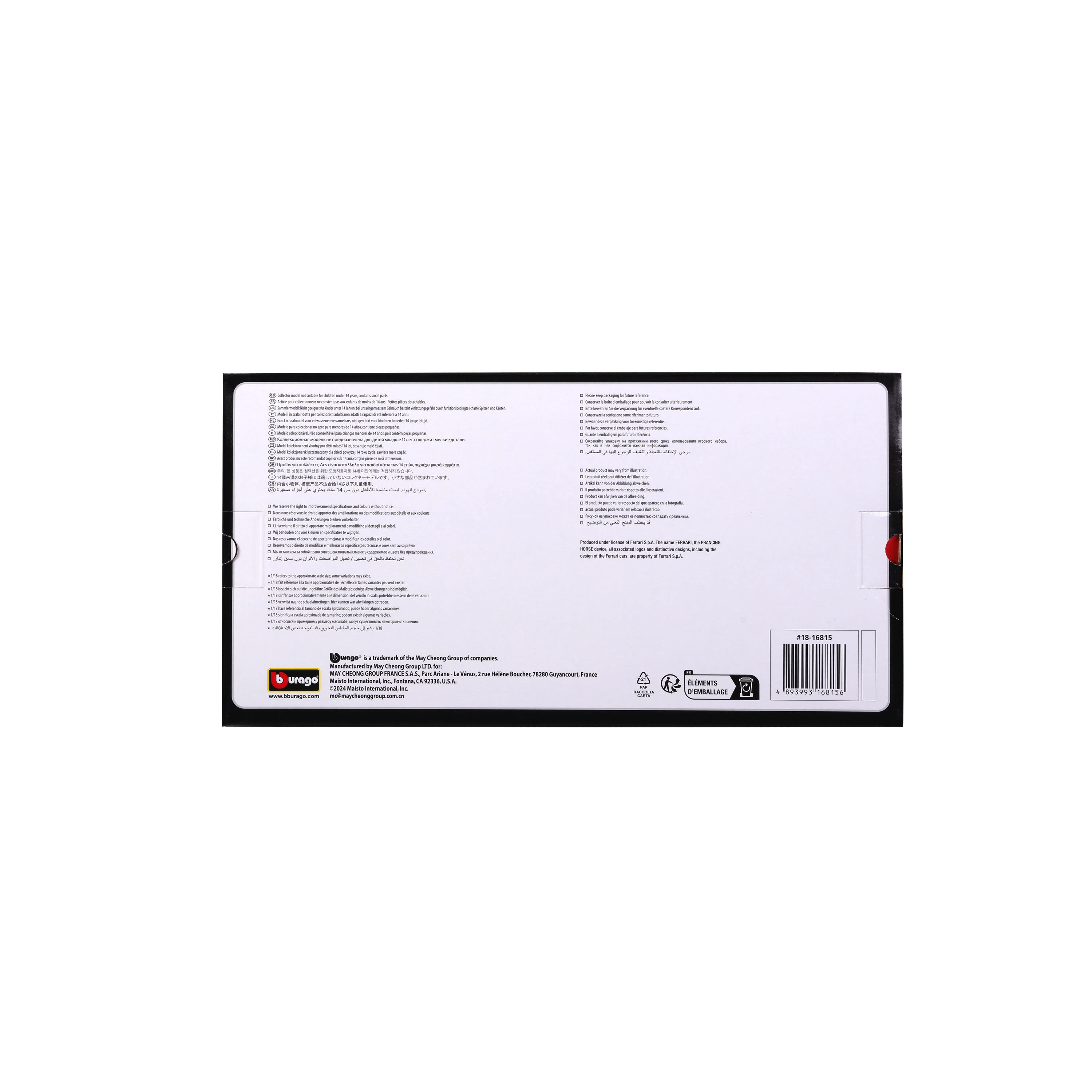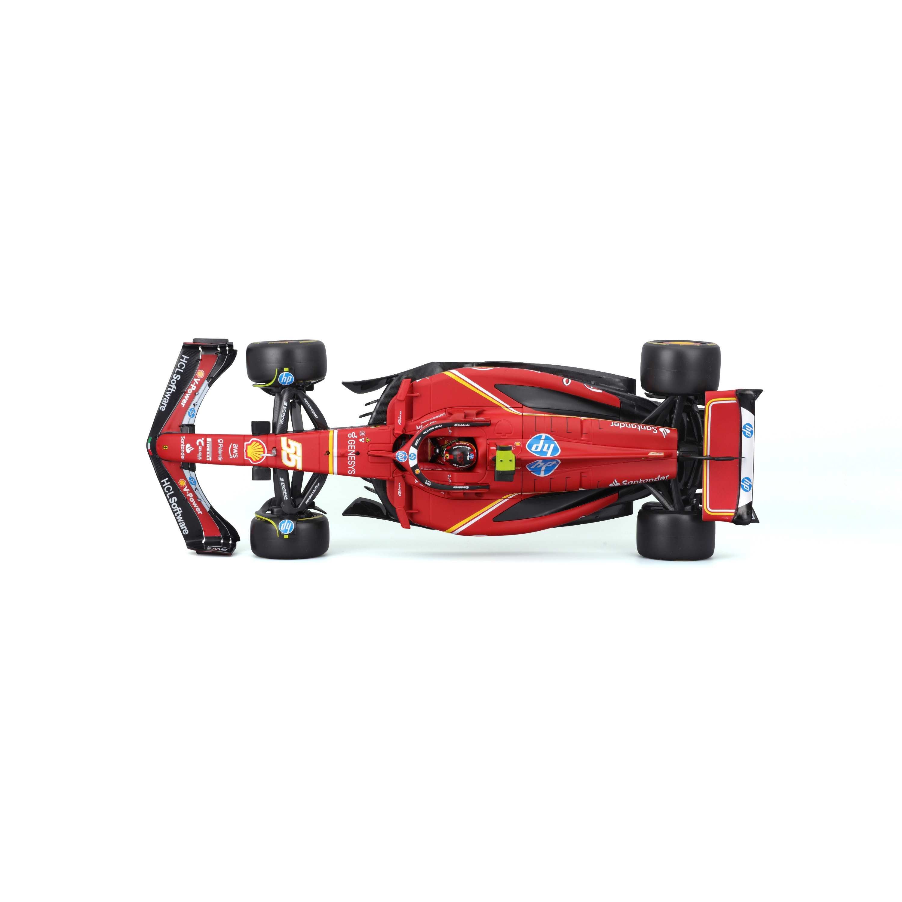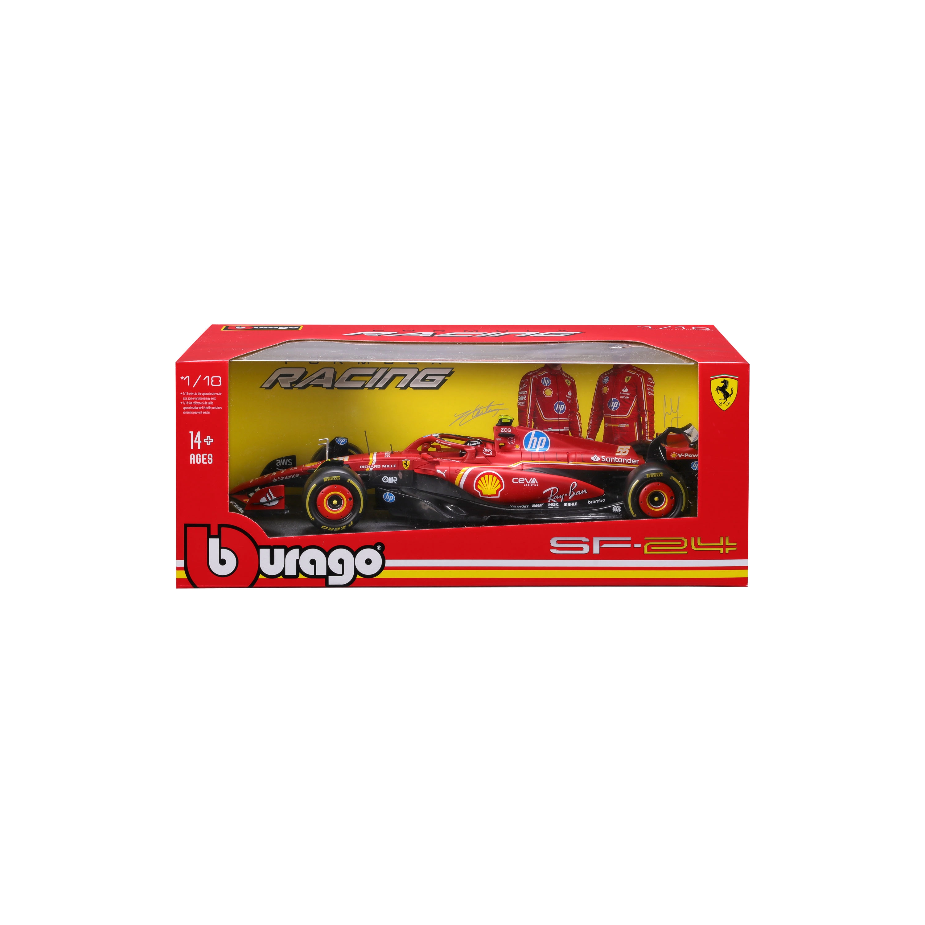 Ontdek de gedetailleerde replica van de Ferrari SF-24 eenzitter uit het seizoen 2024 in iconisch rood. Het model van Bburago biedt natuurgetrouwe verhoudingen, scherpe lijnen en hoogwaardige sponsorbedrukking. In de verpakking vind je ook coureur Carlos Sainz (#55), wat de authenticiteit bij elke presentatie versterkt.