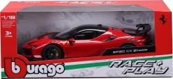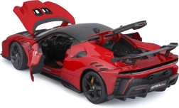 Dit rode model van de Ferrari SF90 XX Stradale van Bburago op schaal 1:18 biedt topafwerking van zowel exterieur als interieur. Je vindt er open aerodynamische elementen, een prominente vleugel, nauwkeurig gevormde koplampen en authentieke cockpitdetails inclusief sportstoelen.
