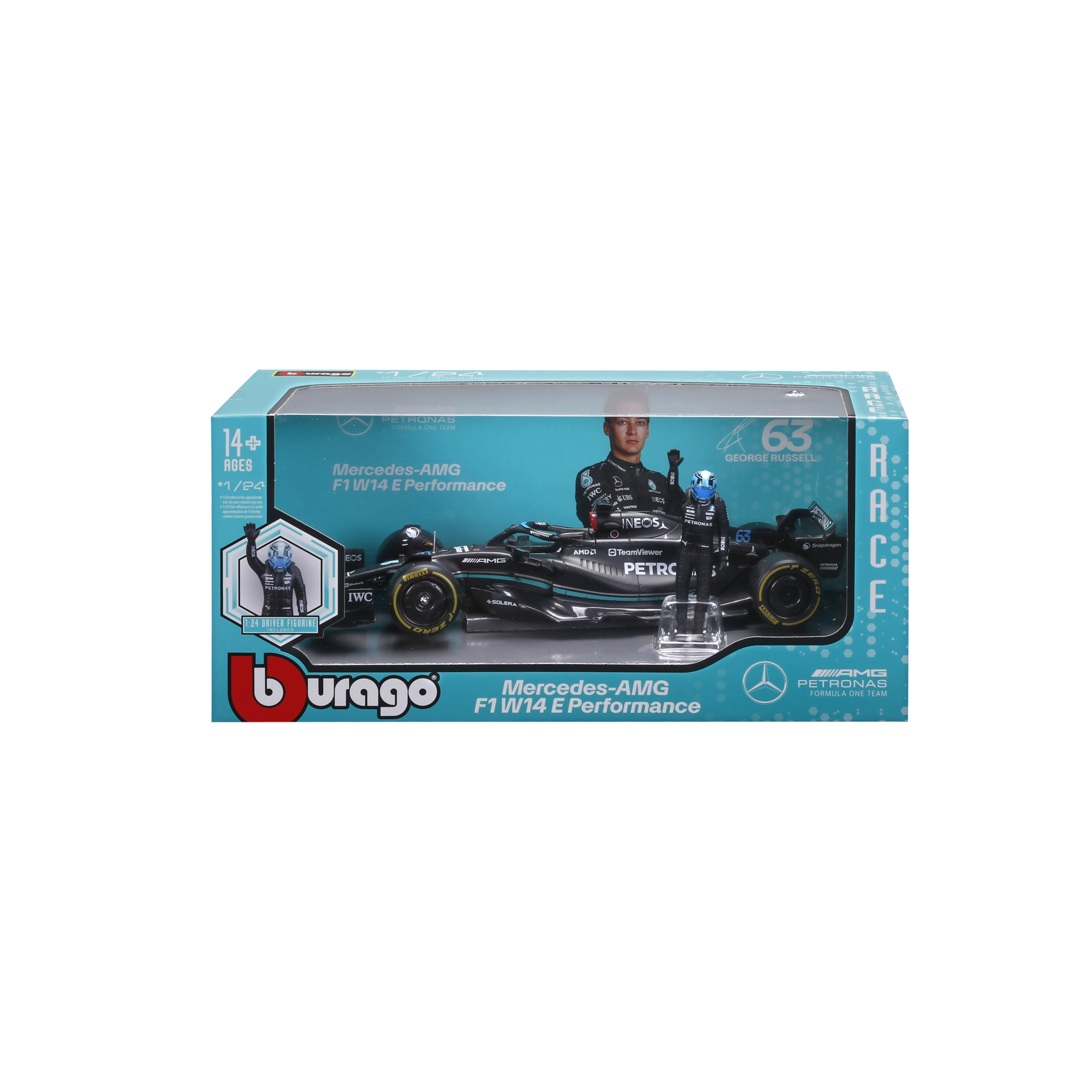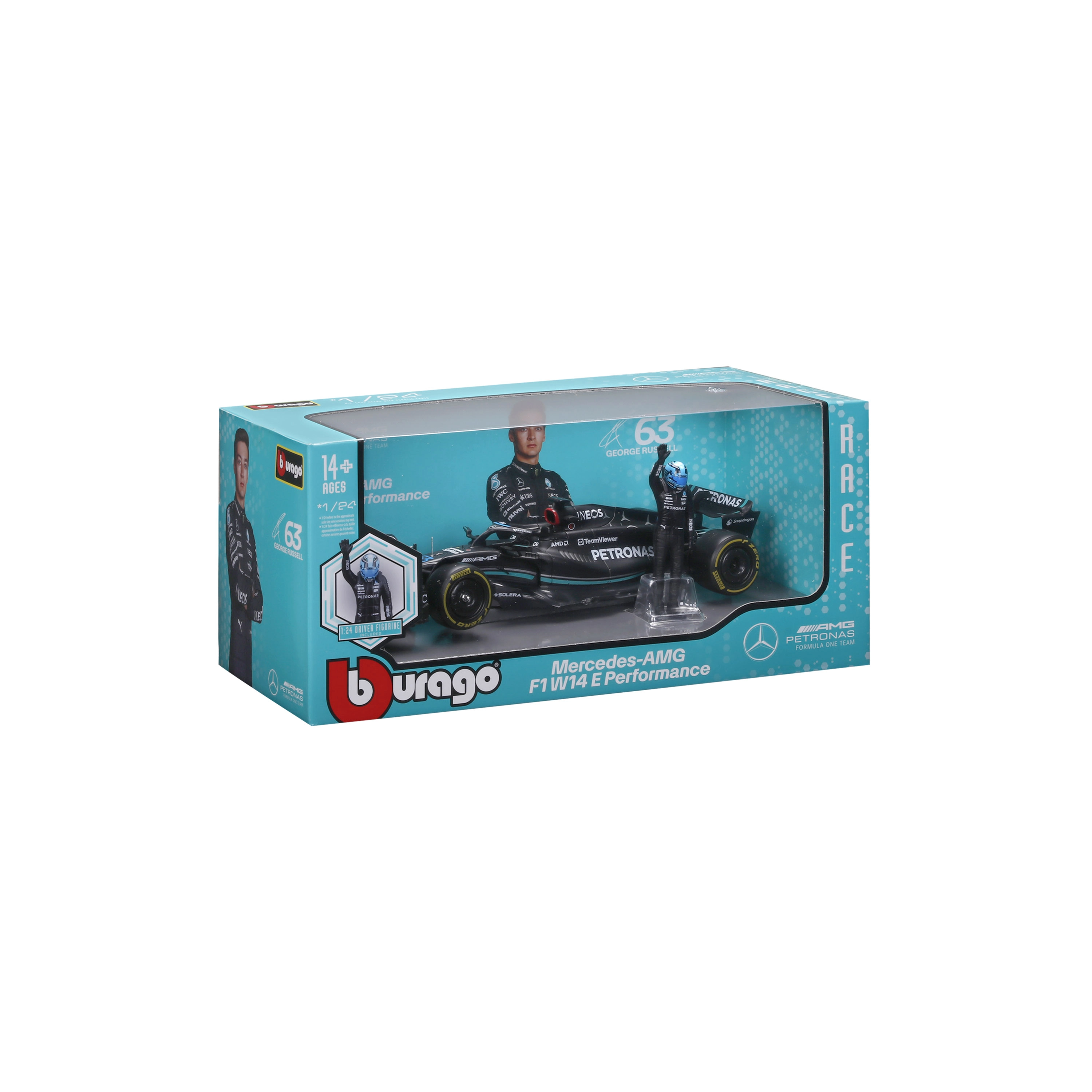 Verrijk je collectie met de iconische monoposto van het seizoen 2023 – de MERCEDES‑AMG F1 W14 E in de kleuren van het PETRONAS‑team. Deze gelicentieerde replica van Bburago op schaal 1:24 blinkt uit door nauwkeurige proporties, authentieke lak, realistische slicks en fijne carrosseriedetails, inclusief halo en vleugels.