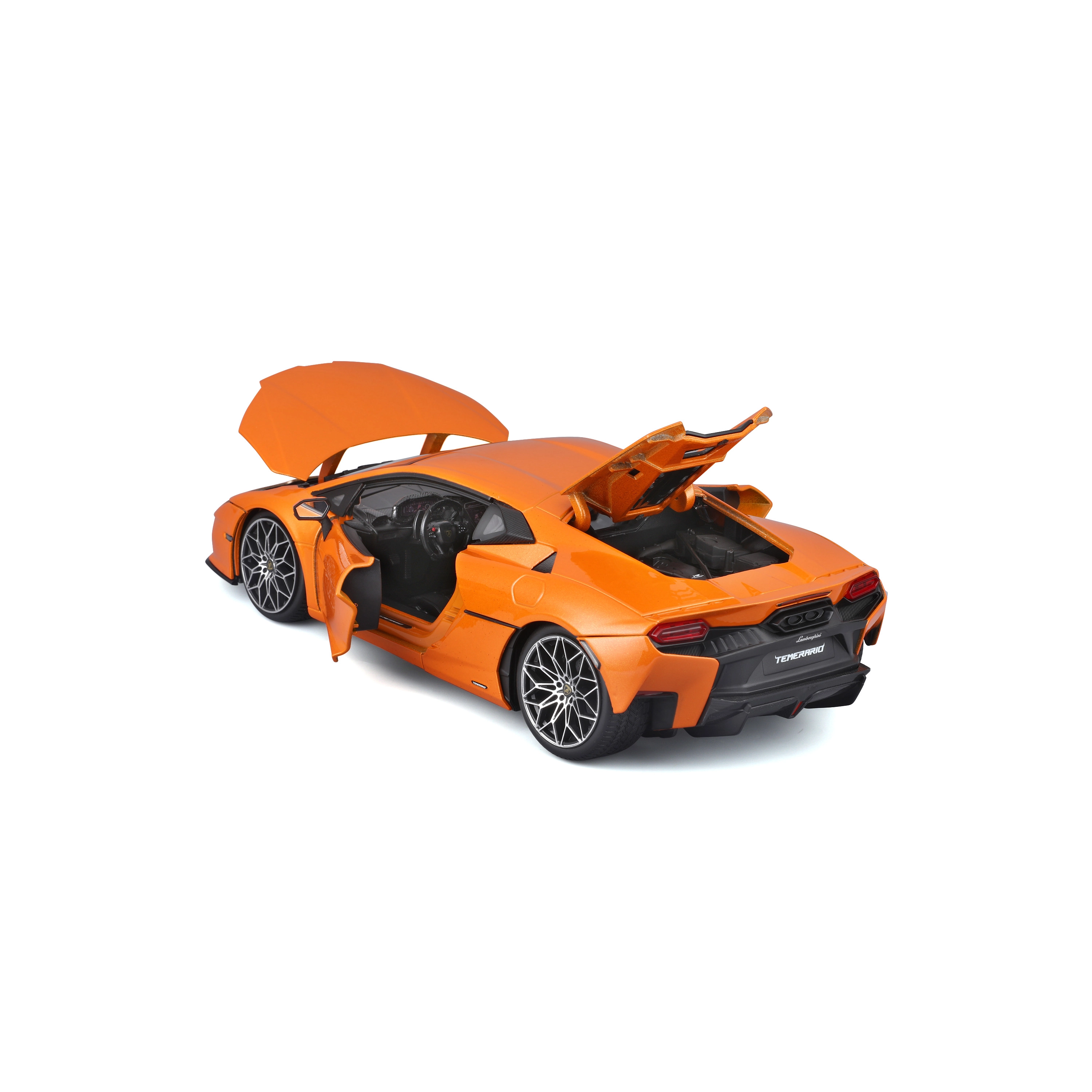 Dit authentieke model van de LAMBORGHINI Temerario van het merk Bburago op schaal 1:18 biedt een combinatie van verzamelkwaliteit en speelse functies. De metalen carrosserie met zorgvuldig gevormde aerodynamische lijnen, transparante ramen en gedetailleerde velgen zorgt voor een getrouwe uitstraling van een echte supercar.