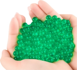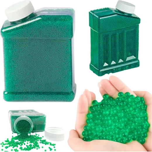Vul je voorraad voor gelpistolen aan met een verpakking van 20.000 groene hydrogelkralen. Na weken groeien ze tot 7–8 mm, ze zijn zacht, elastisch en veilig voor spel. Gemaakt van een niet-giftige hydrogelpolymeer, eenvoudig te bereiden en met een intens groene kleur voor goede zichtbaarheid.