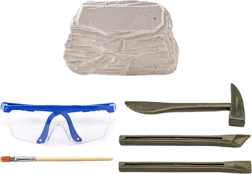 Ontdek de fascinerende prehistorische wereld met deze educatieve set voor jonge onderzoekers. In het gipsblok zit een willekeurige fossiel verborgen (bijv. trilobiet, anomalocaris, archaeopteryx, cycaspalm of dinosaurus-ei), die het kind voorzichtig opgraaft met behulp van beitel, hamertje en kwastjes. Plezier dat geduld, fijne motoriek en concentratie ontwikkelt – de ideale combinatie van spel en leren.