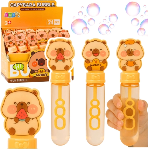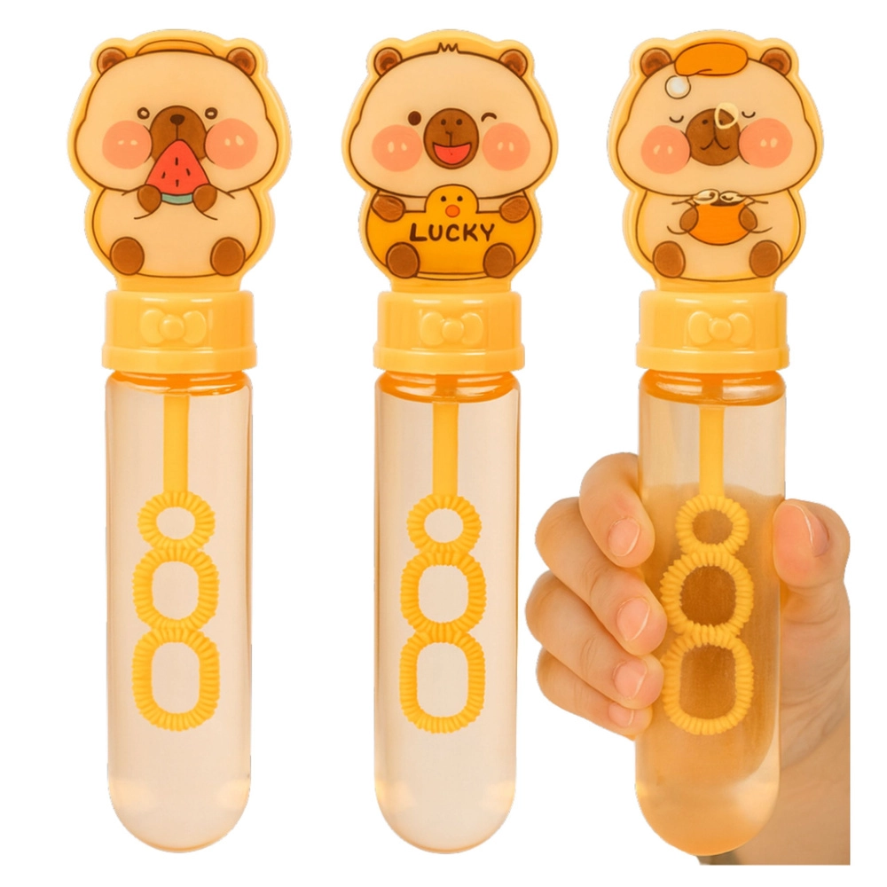 De dop in de vorm van een capibara trekt de aandacht van kinderen en maakt van de bellenblaas een favoriet accessoire voor speelplaatsen en feestjes.